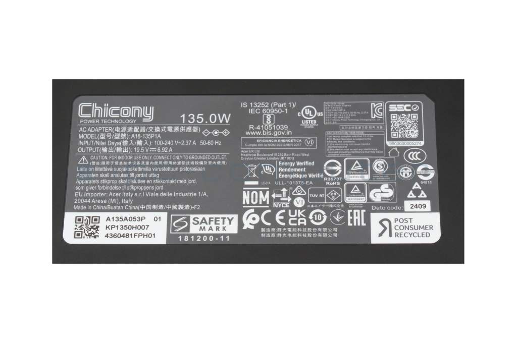 Acer ConceptD 3 Ezel (CC314-72G) original Chargeur 135 watts normal