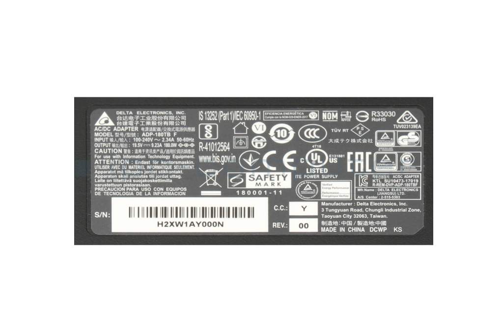 Acer Predator Helios 300 (PH317-54) Chargeur 180 watts mince de Delta Electronics