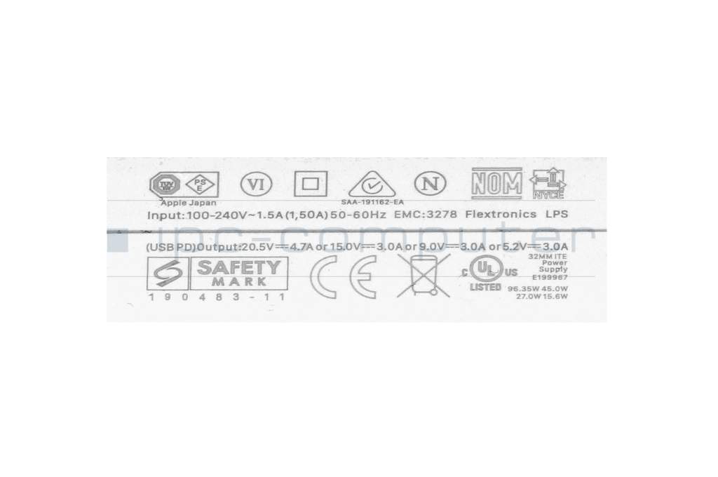 Apple MacBook Pro M5 Max (16″ 2026) A3429 original Chargeur USB-C 96 watts EU wallplug blanc