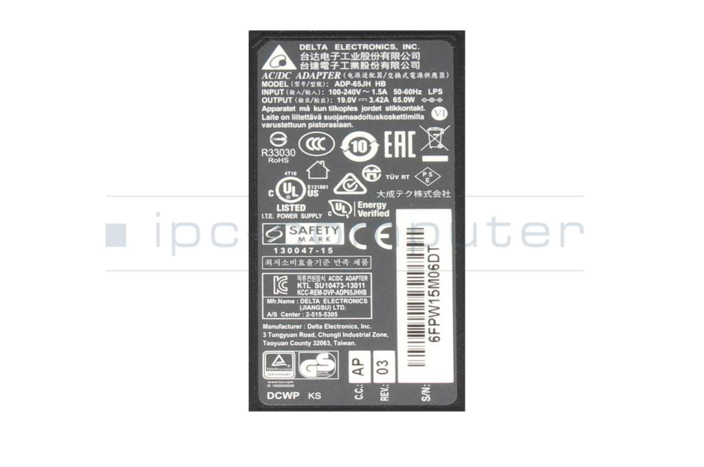 Asus R556LB Chargeur 65 watts de Delta Electronics