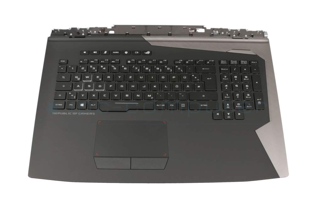 Clavier incl. topcase DE (allemand) noir/noir avec rétro-éclairage - sans haut-parleur - original pour Asus ROG G703GI