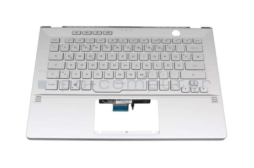 Clavier incl. topcase DE (allemand) argent/argent avec rétro-éclairage original pour Asus ROG Zephyrus G14 GA401IU