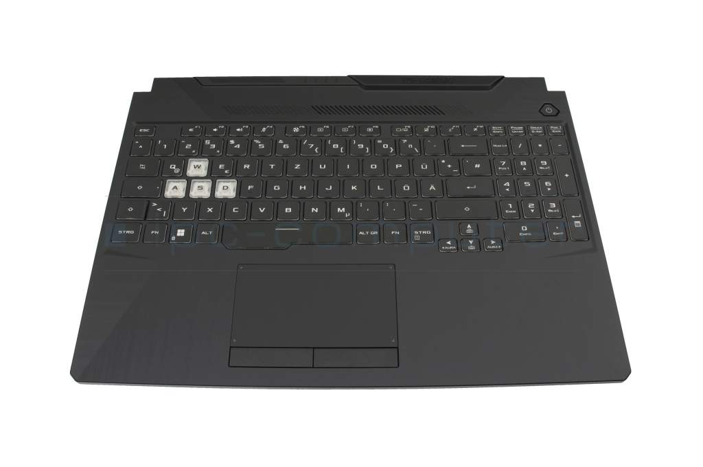 Clavier incl. topcase DE (allemand) noir/transparent/noir avec rétro-éclairage original pour Asus TUF Gaming F15 FX506HF
