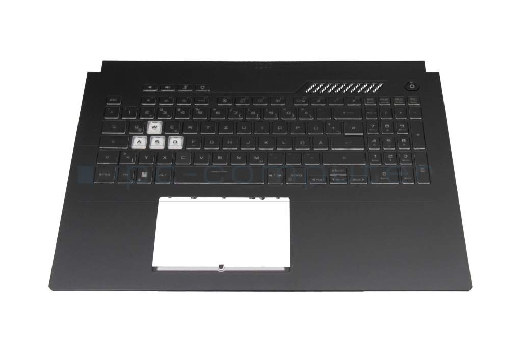 Clavier incl. topcase DE (allemand) noir/transparent/gris avec rétro-éclairage original pour Asus TUF Gaming F17 FX707ZR