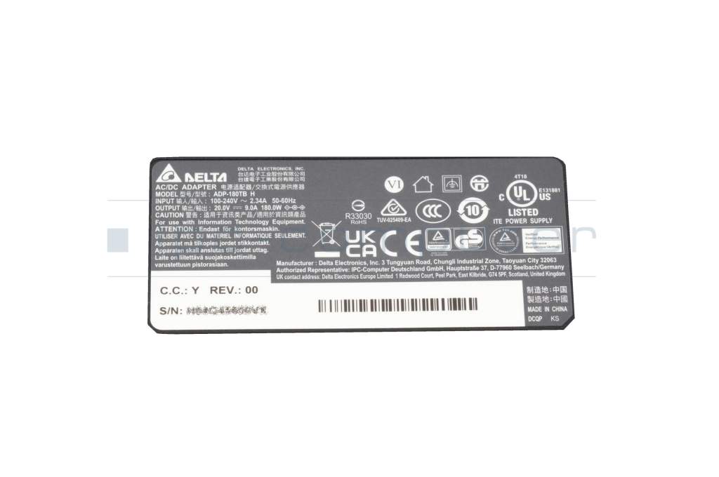 Clevo W871CU Chargeur 180 watts mince de Delta Electronics (5,5/2,5)