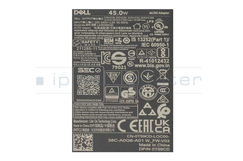 Chargeur USB-C 45 watts Small original pour Dell Latitude 13 2in1 (3390)