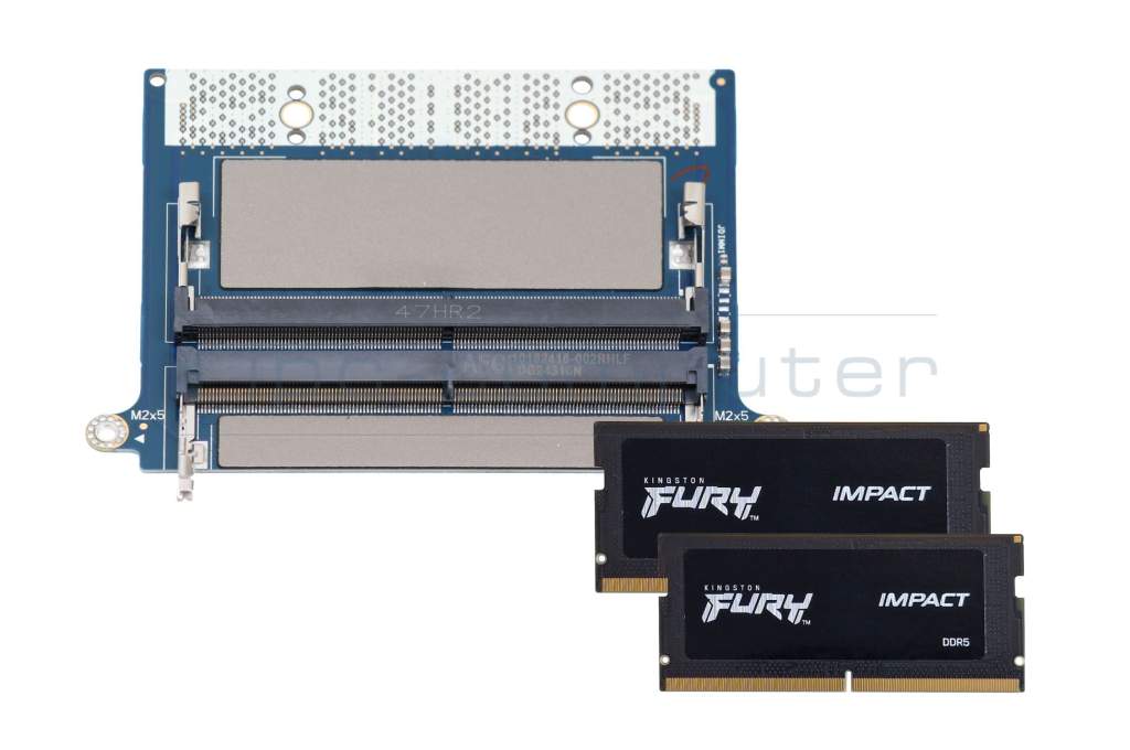 L'installation est simple : il vous suffit de retirer le capot arrière de votre ordinateur portable, de remplacer votre module CAMM existant par cet adaptateur et d'y insérer les deux mémoires DDR5 SO-DIMM fournies. Vous trouverez des instructions étape par étape dans le manuel d'entretien de votre système.