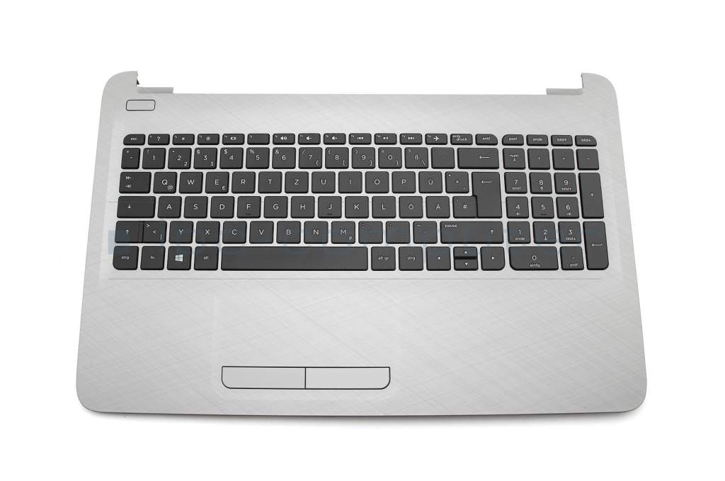 Clavier incl. topcase DE (allemand) noir/argent Inscription blanche, structure linéaire sur la surface du boîtier original pour HP 15-ba000