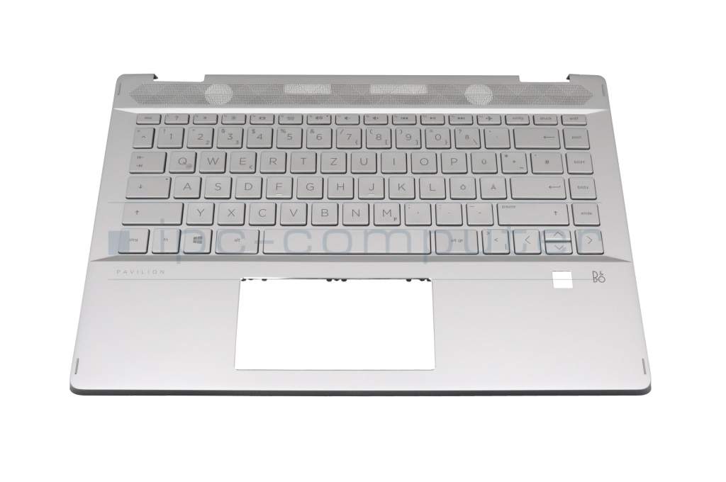 Clavier incl. topcase DE (allemand) argent/argent avec rétro-éclairage original pour HP Pavilion x360 14-dh0400