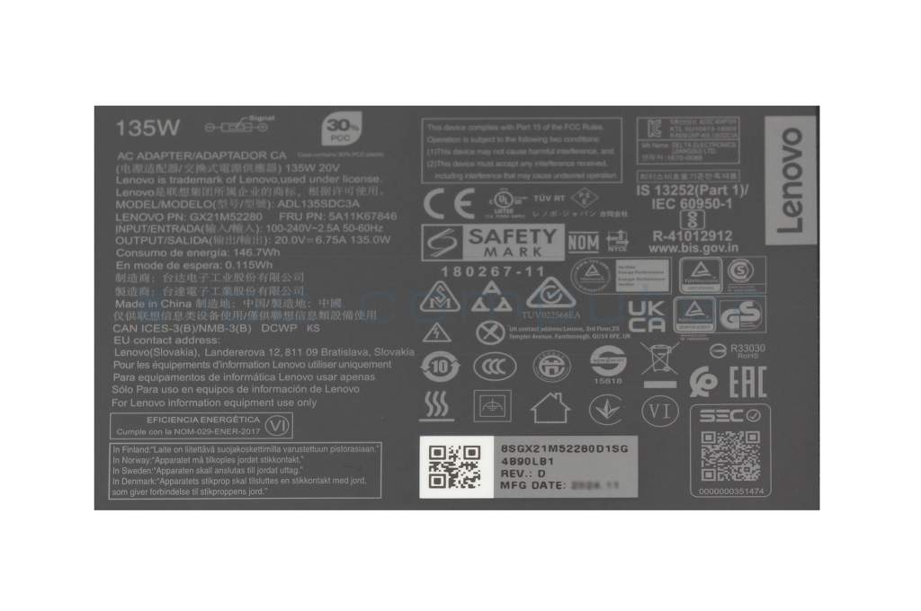 Lenovo ThinkCentre M90q Gen 2 (11MQ) original Chargeur 135 watts mince