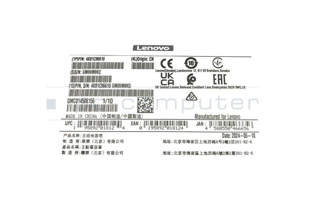 Le ThinkPad Pen Pro-10 prend en charge jusqu'à 4 096 niveaux de sensibilité à la pression. Il dispose de deux boutons intégrés configurables dont les raccourcis sont facilement accessibles. Le stylo se recharge facilement dans le porte-stylo de l'ordinateur portable et se range également en toute sécurité.