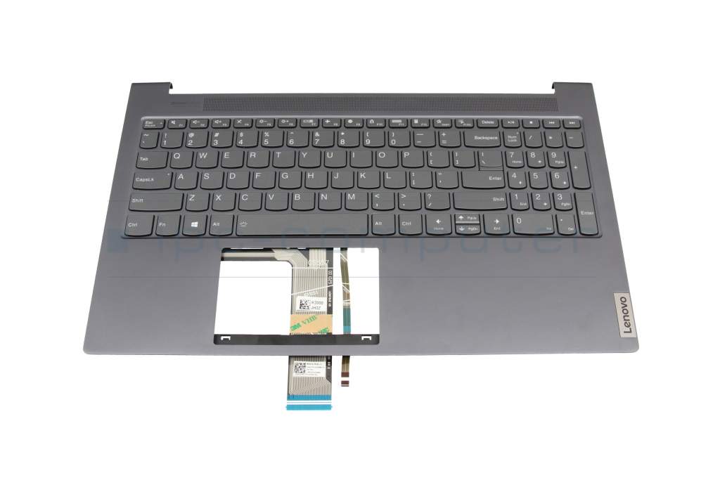 Clavier incl. topcase US (anglais) gris/gris avec rétro-éclairage original pour Lenovo Yoga Slim 7-15IMH05 (82AB)