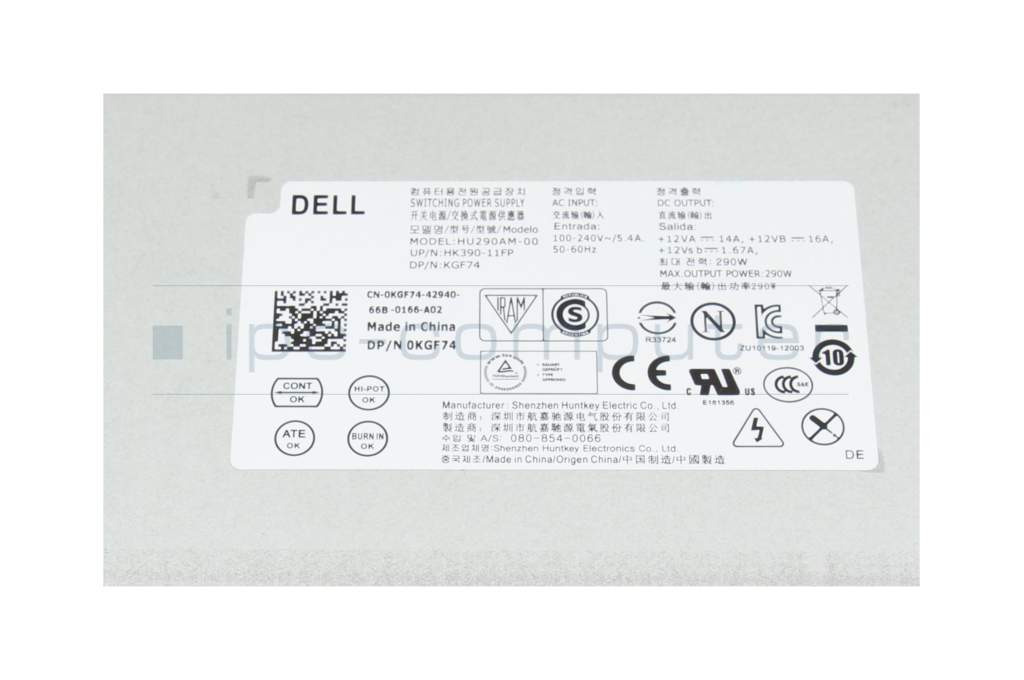 0RVTHD original Dell alimentation du Ordinateur de bureau 290 watts