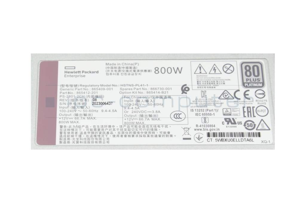 HPE Z 1U 800W G10+ 12V HTPLG RED