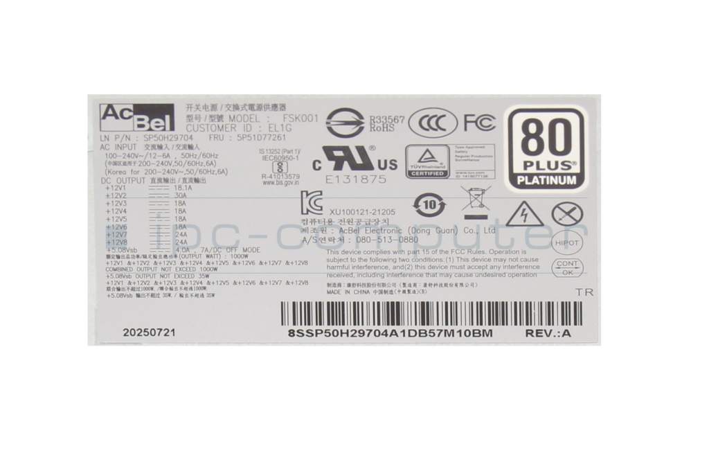 SP50H29704 original Lenovo alimentation du Ordinateur de bureau 1000 watts