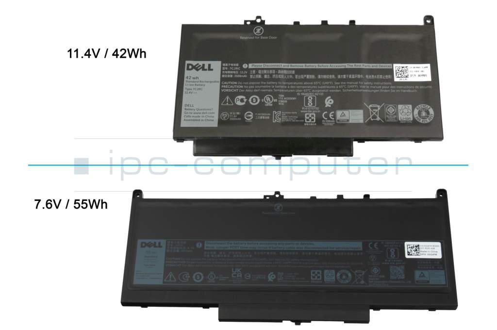 Remarque : 7,6 V / 55 W. Cette batterie est disponible en deux versions de longueurs différentes avec 7,6 V / 11,4 V. Veuillez comparer les images et les indications de voltage avec votre ancienne batterie.