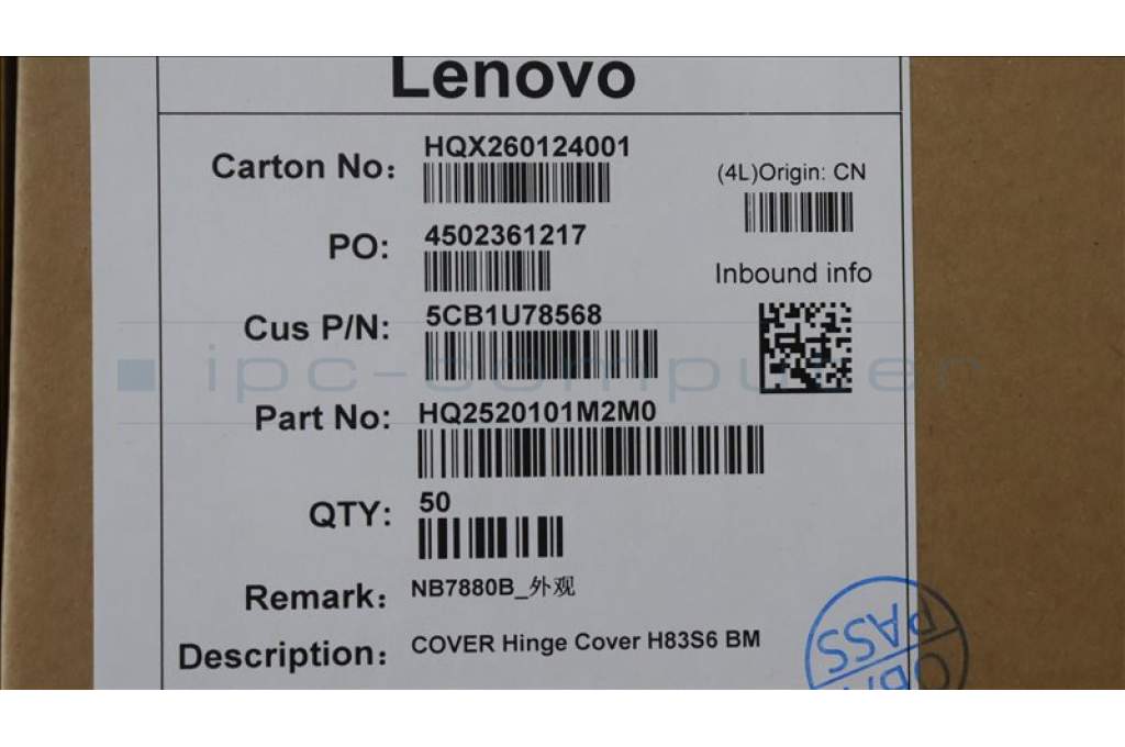Lenovo 5CB1U78568 COVER Hinge Cover H83S6 BM