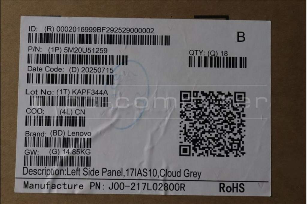 Lenovo 5M20U51259 MECHANICAL L/Side Panel,17IAS10,Cld Grey