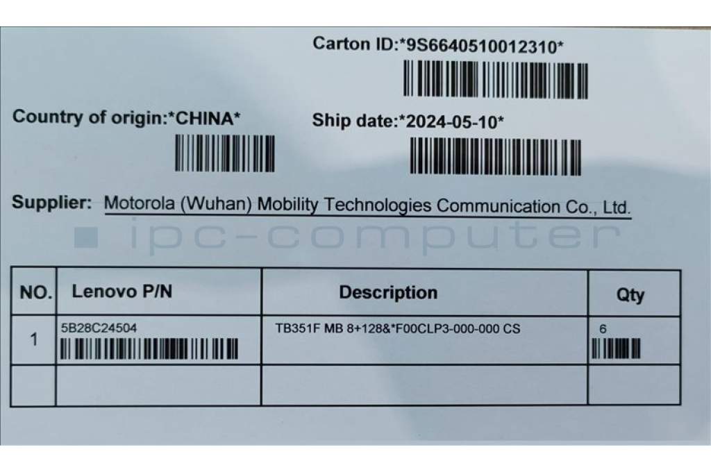 Lenovo 5B28C24504 TB351F MB 8+128&*F00CLP3-000-000 CS