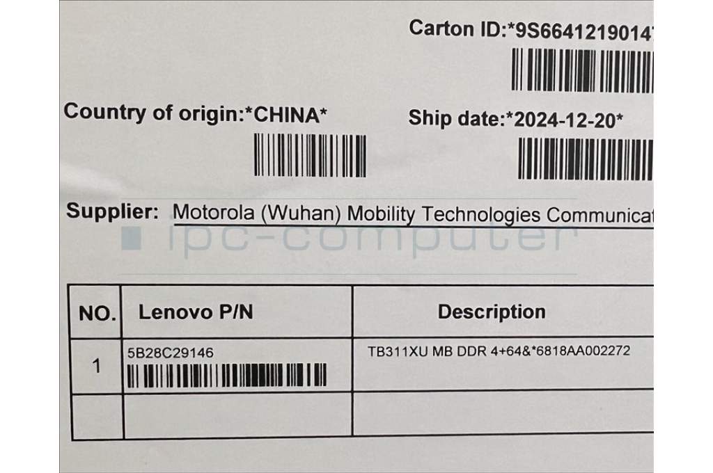 Lenovo 5B28C29146 TB311XU MB DDR 4+64&*6818AA002272