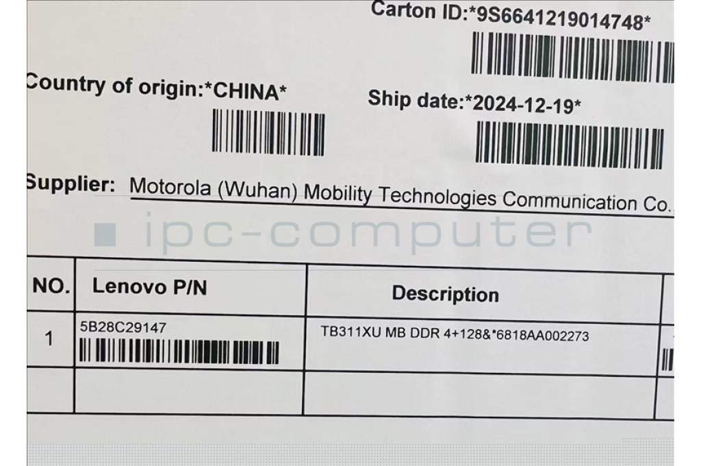Lenovo 5B28C29147 TB311XU MB DDR 4+128&*6818AA002273