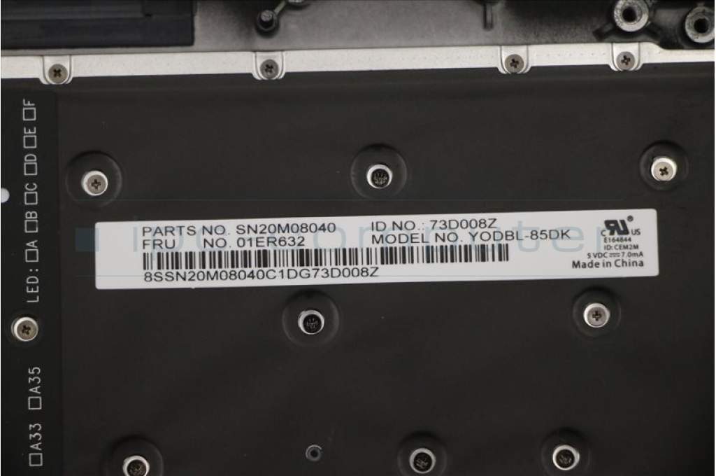 Lenovo 01LV284 MECH_ASM KBD,Bezel,DK,FPR,NFC,BK,CHY