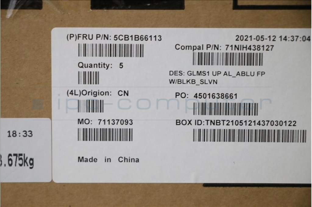 Lenovo 5CB1B66113 COVER UpperCase_SLV C82FE ALBUW FPBL
