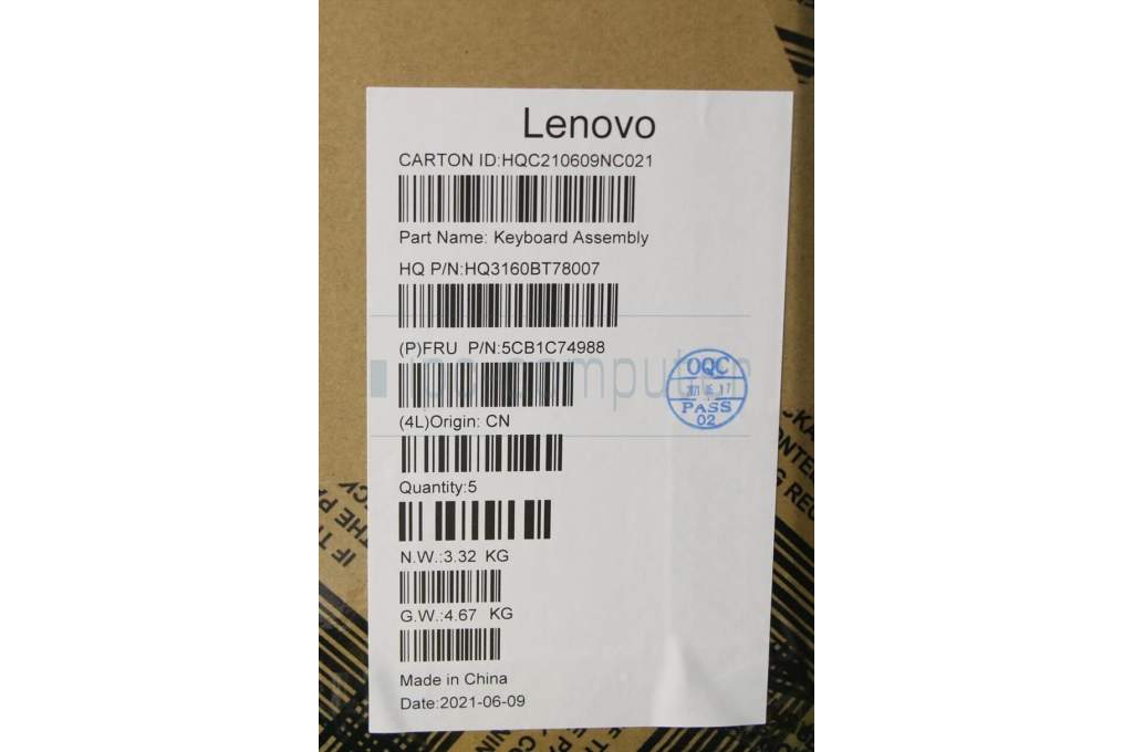 Lenovo 5CB1C74988 COVER Upper Case ASM_SLV H82L5 STO DIS