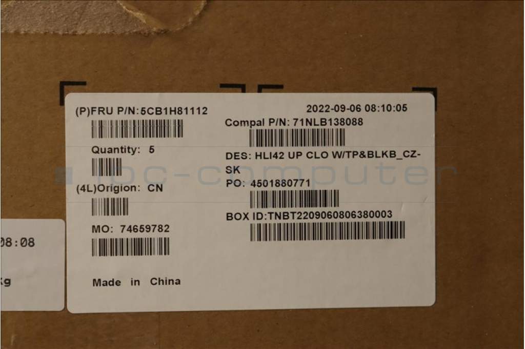 Lenovo 5CB1H81112 COVER UpperCaseASM_CZE/SLK C82SH CloBL