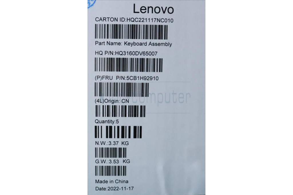Lenovo 5CB1H92910 COVER Upper Case ASM_BEL H 82SK CLGY UMA