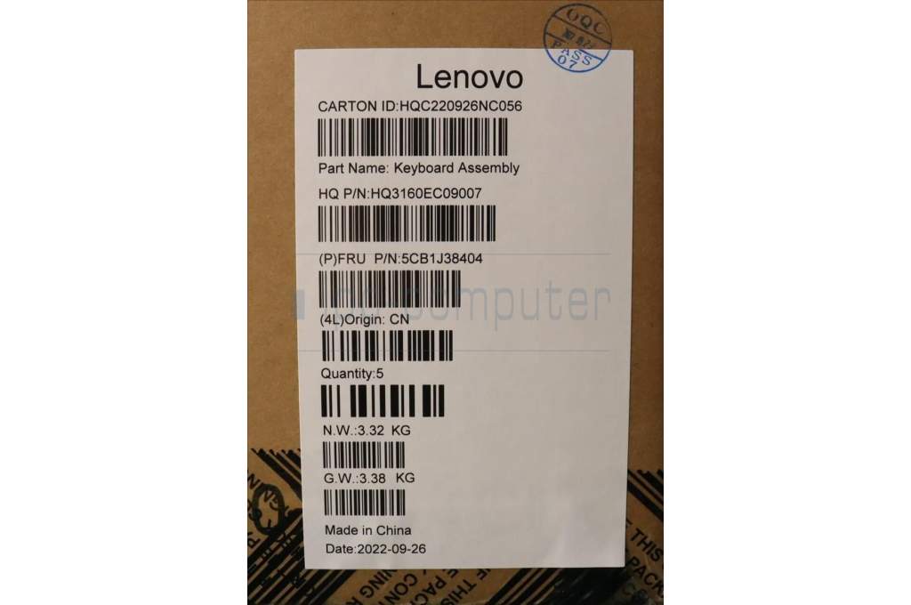 Lenovo 5CB1J38404 COVER Upper Case ASM_EURO ENG H D VGA