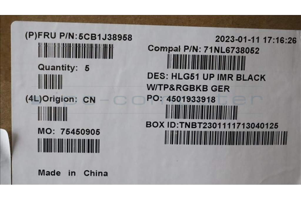 Lenovo 5CB1J38958 COVER UpperCase ASM_GER C82SCRGB BLA