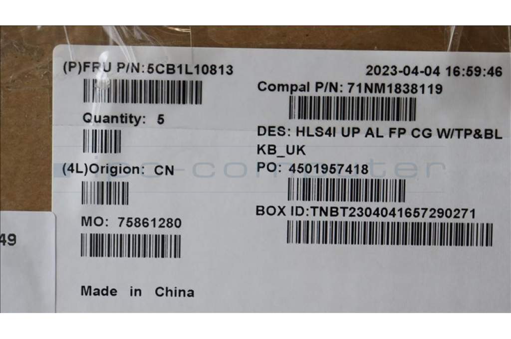 Lenovo 5CB1L10813 COVER UpperCase_UKE C82XD FP CG BL AL