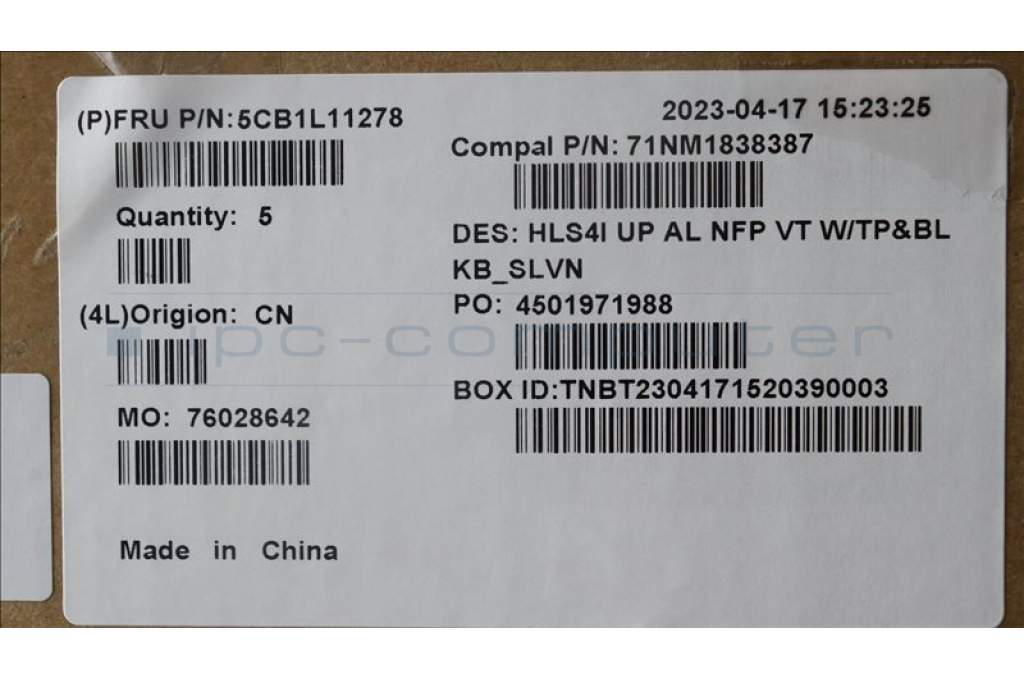 Lenovo 5CB1L11278 COVER UpperCase_SLV C82XD NFP VT BL AL