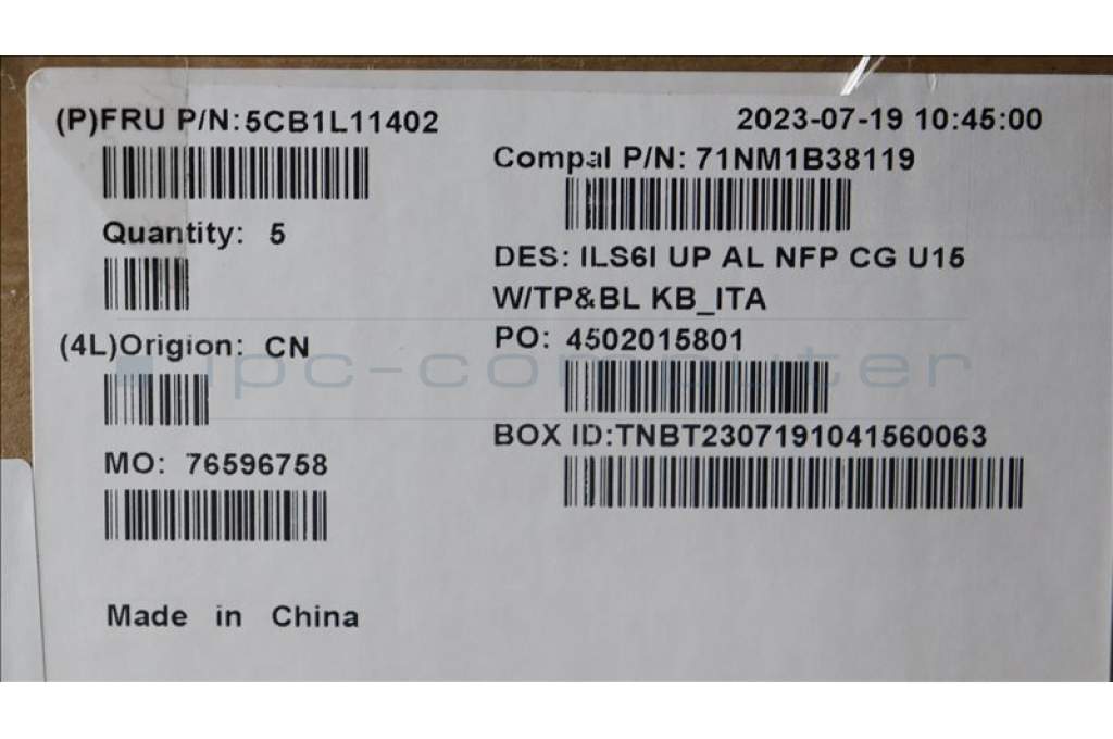 Lenovo 5CB1L11402 COVER UpperCase_ITA C82XF NFP CG BL AL