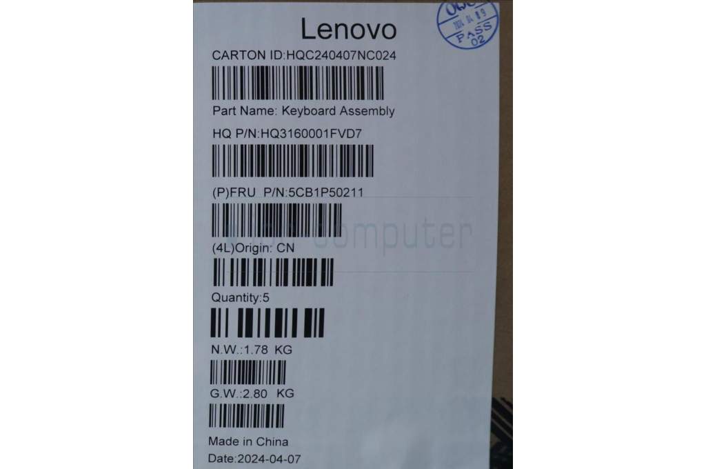 Lenovo 5CB1P50211 COVER Upper Case ASM ARA H83E2 LG 2.5K