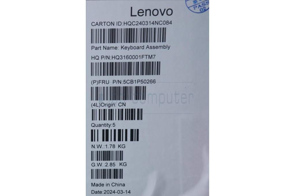 Lenovo 5CB1P50266 COVER Upper Case ASM KOR H83E2 LG PST