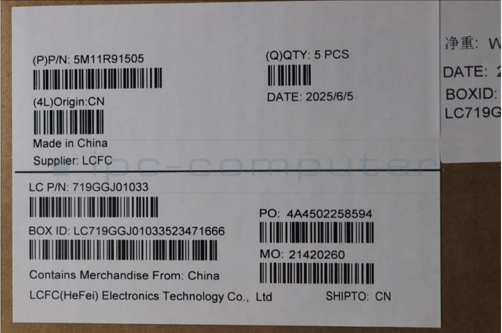 Lenovo 5M11R91505 MECH_ASM BL KB GY FPR WW HBW CHY