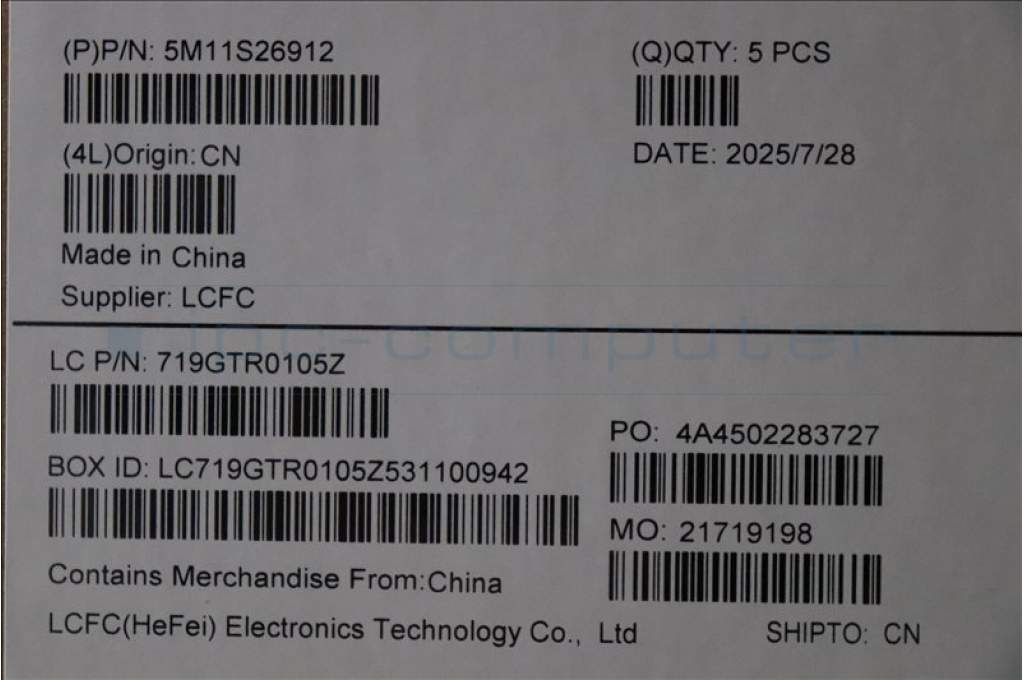 Lenovo 5M11S26912 MECH_ASM FRU KBD WC ILD BL(CHY)UK BK