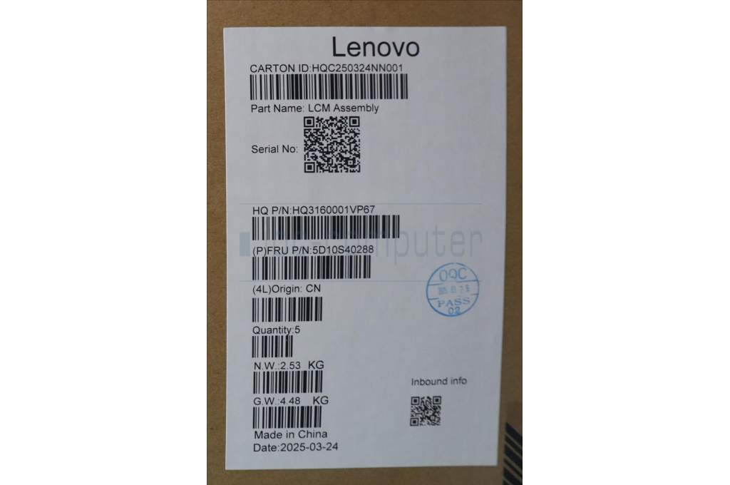 Lenovo 5D10S40288 Lenovo LCD Module, 16", 2.8K, Touch, Glare, Anti-smudge, OLED, 500nit, 100%DCI-P3, Seashell