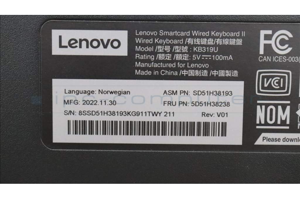 Lenovo Smartcard Wired Keyboard II,Norwegian