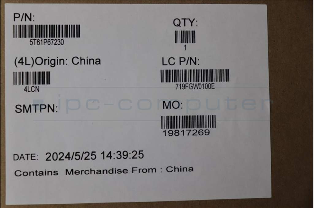 Lenovo 5T61P67230 CS21_3+2bCP, Glass like Mylar, Synaptics PCB, Black, NFC, SOVP&MP, Transimage