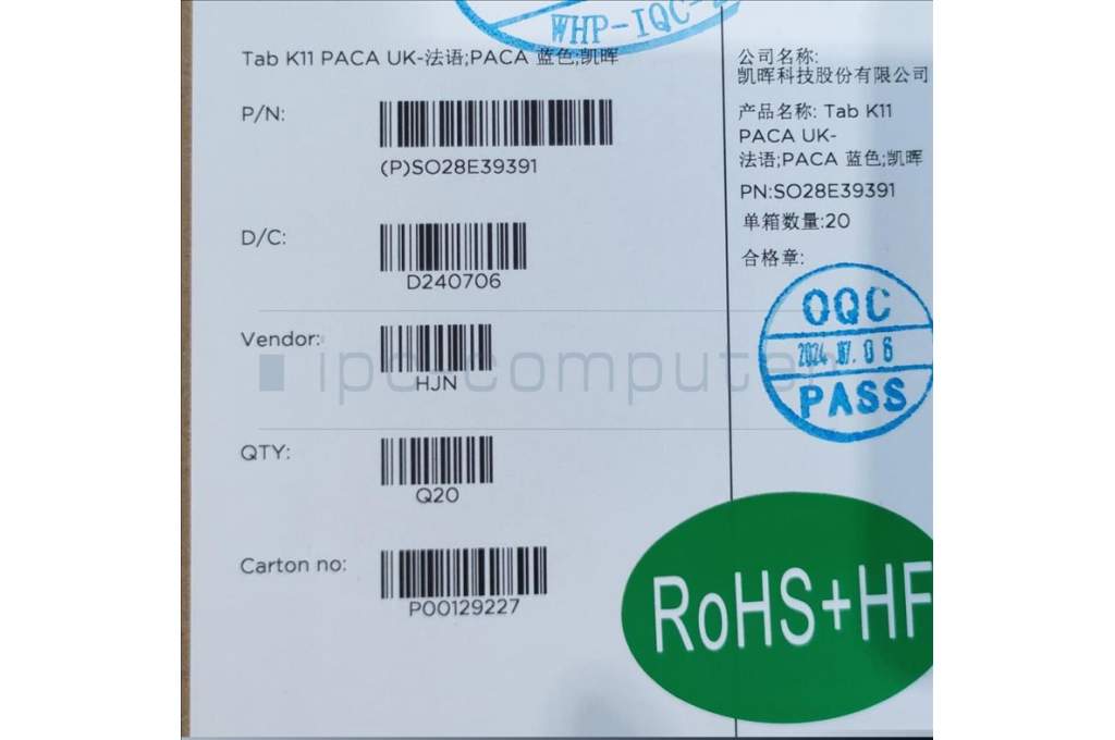 Lenovo SO28E39391 Tab K11 PACA UK-French KB;PACA Blue;KH