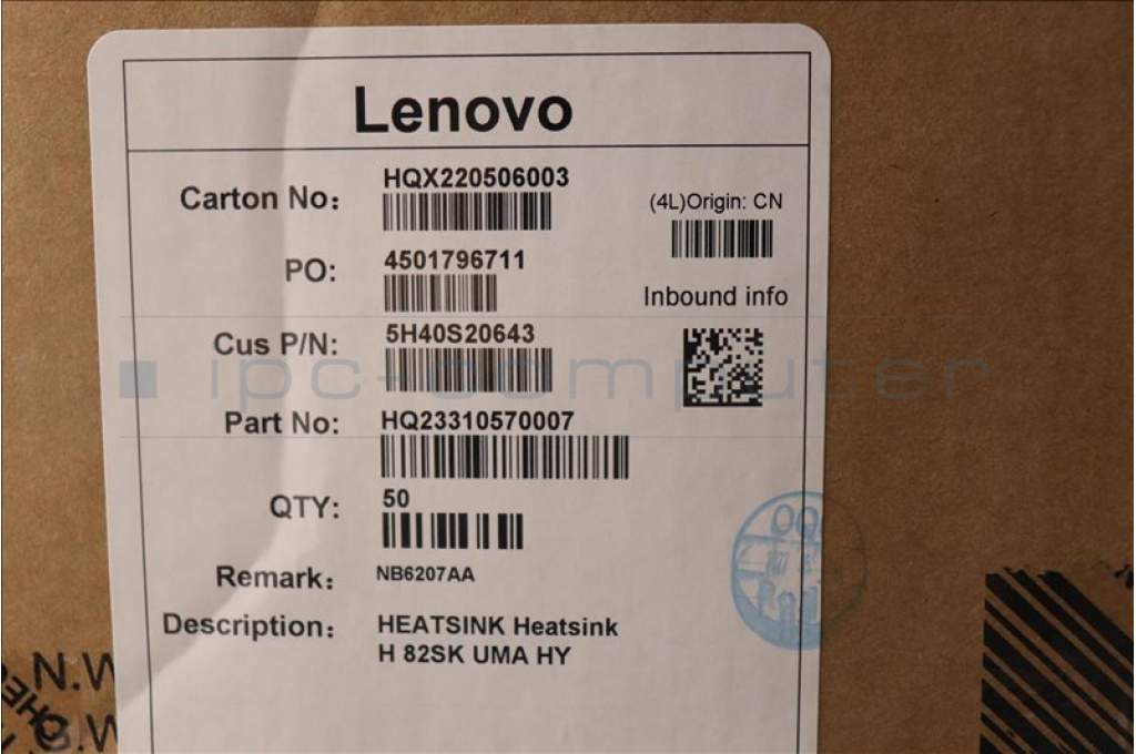 Lenovo 5H40S20643 HEATSINK Heatsink H 82SK UMA HY