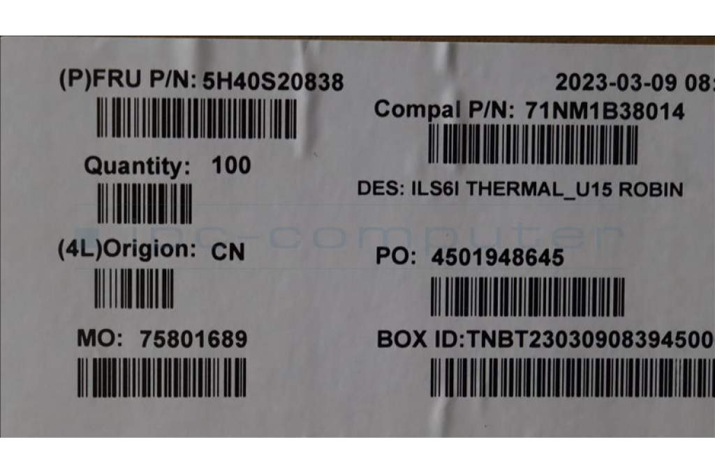 Lenovo 5H40S20838 HEATSINK Heatsink C 82XF U15 ROBIN