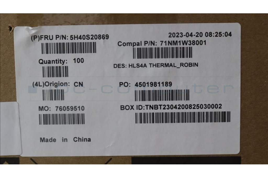 Lenovo 5H40S20869 HEATSINK Heatsink C 82XE ROBIN