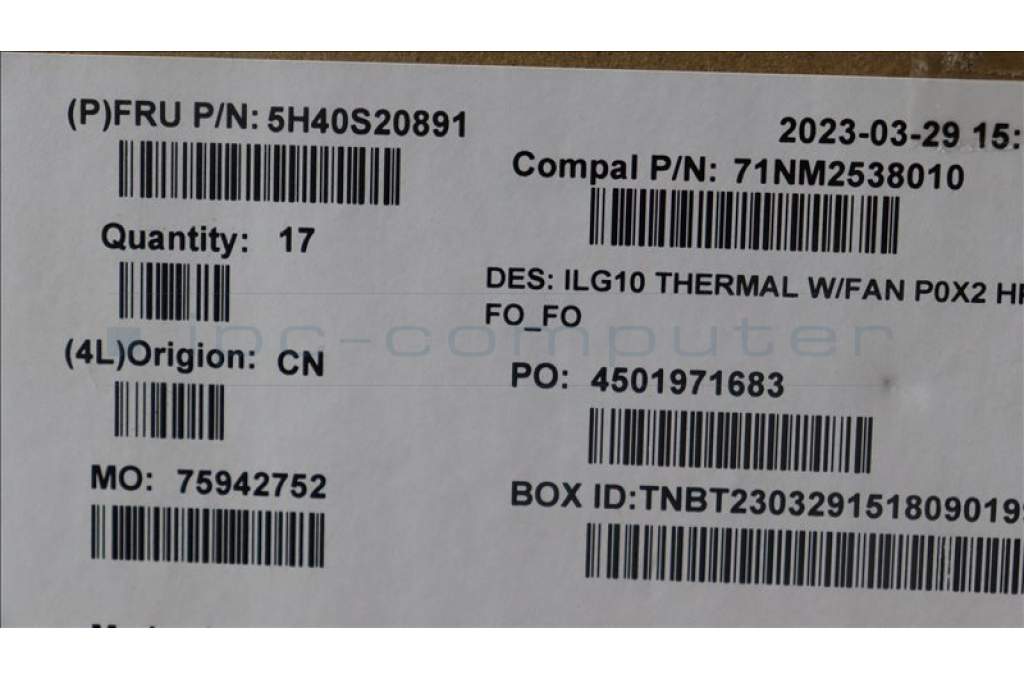 Lenovo 5H40S20891 HEATSINK Thermal module C 82XV FOFO P0X2