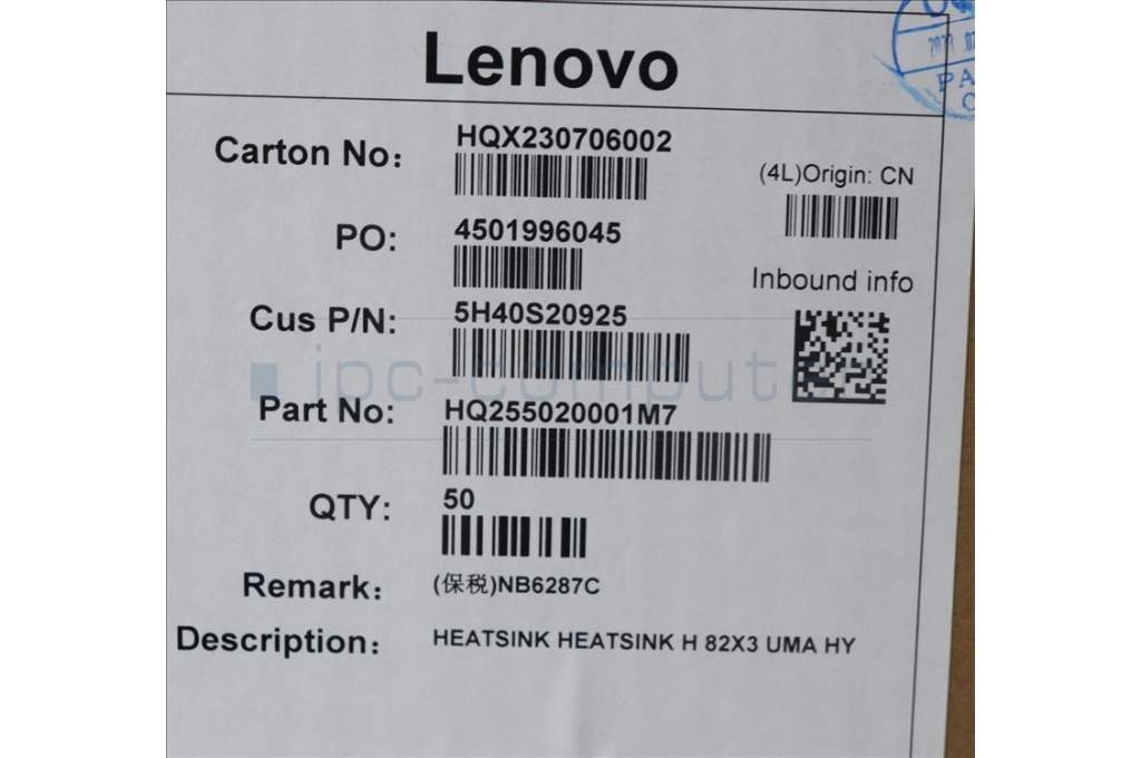Lenovo 5H40S20925 HEATSINK HEATSINK H 82X3 UMA HY