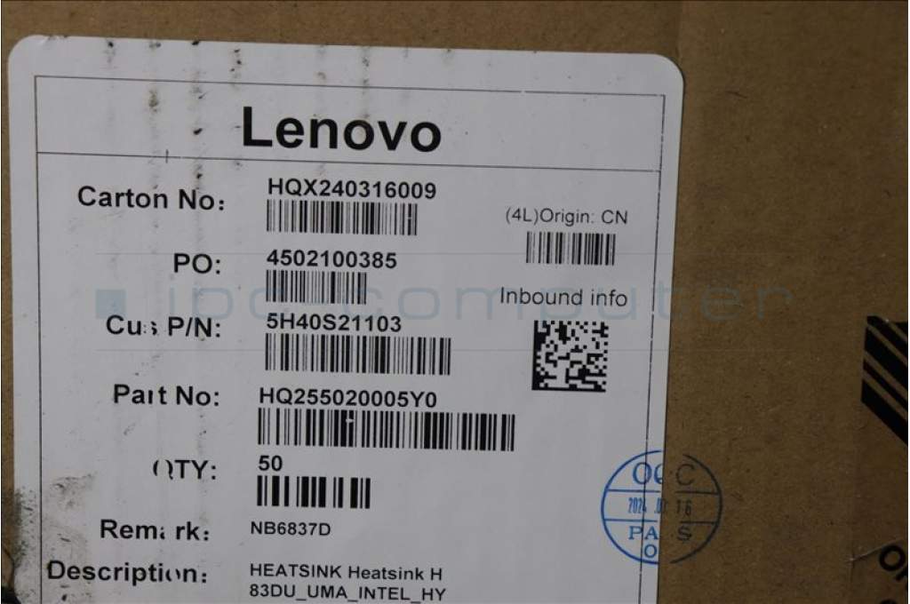 Lenovo 5H40S21103 HEATSINK Heatsink H 83DU_UMA_INTEL_HY