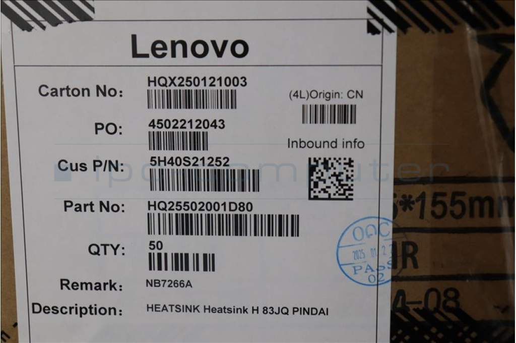 Lenovo 5H40S21252 HEATSINK Heatsink H 83JQ PINDAI